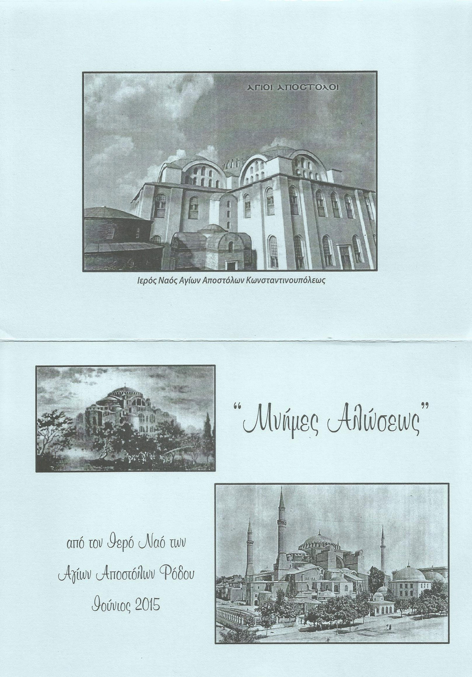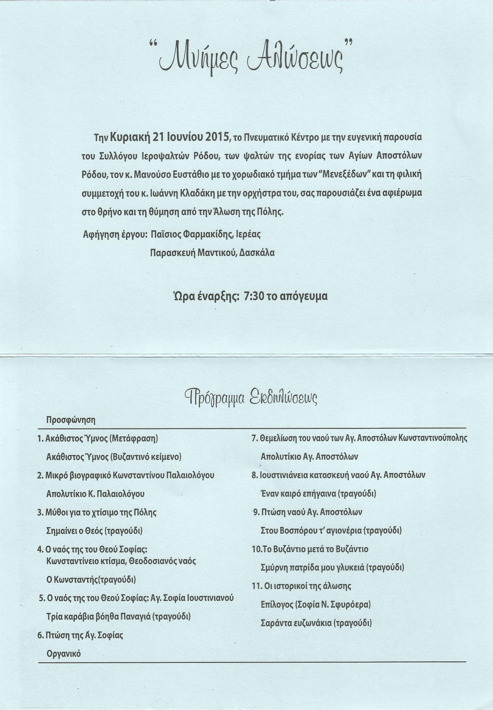 Πρόγραμμα εκδήλωσης "Μνήμες Αλώσεως" Ιούνιος 2015