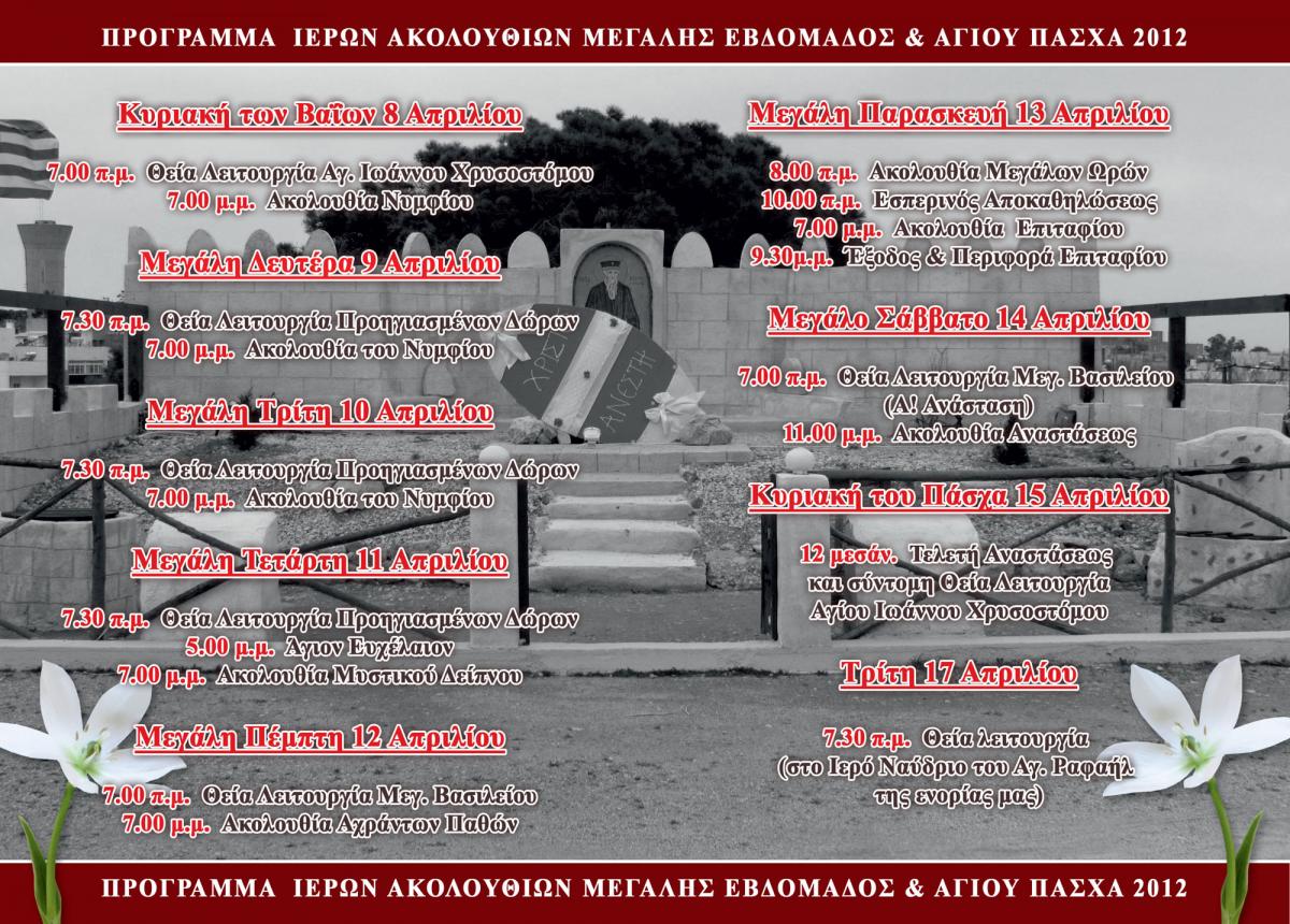 Πρόγραμμα Ιερών Ακολουθίων Αγίου Πάσχα 2012